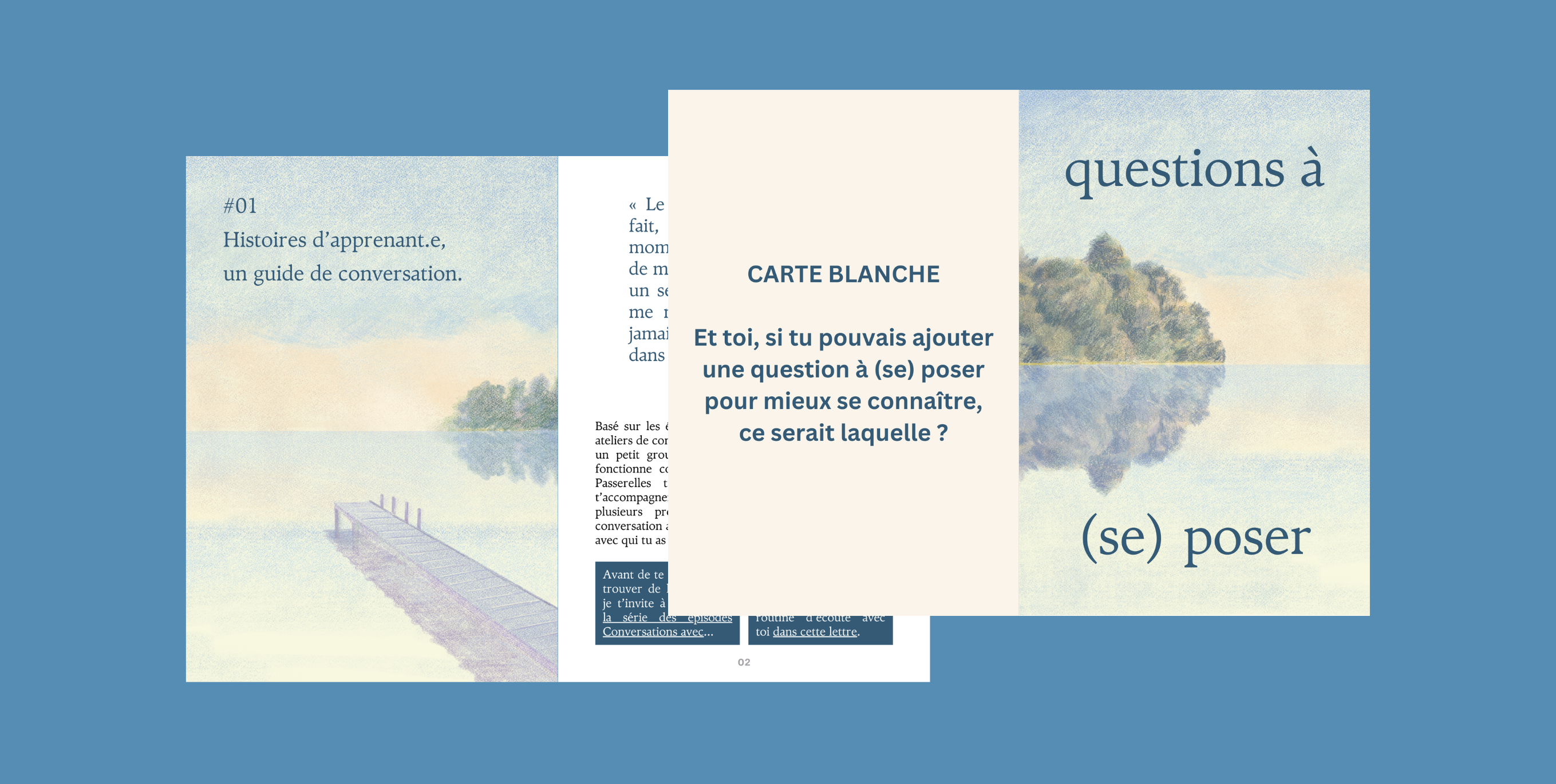 Tu peux donc utiliser la version classique du guide de conversation et des questions à (se) poser si tu as envie d’une lecture plus confortable sur ton ordinateur ou sur ta tablette. Et si ça te dit de créer, de jouer, tu peux imprimer la version leporello du guide et la version cartes à imprimer des questions.